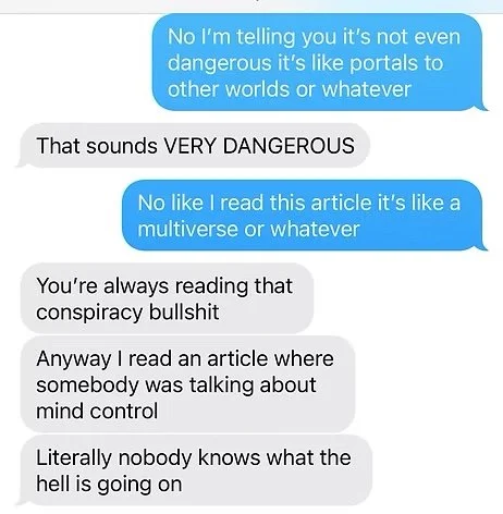 For the conspiracy wall, a bulletin board, and a selection of hand props I created a lot of in-world paper props. Many of these were handwritten (by myself and friends) or hand drawn (by me) because of the nature of our apocalypse, but some were old print outs of pictures, articles, or screenshots of social media posts.