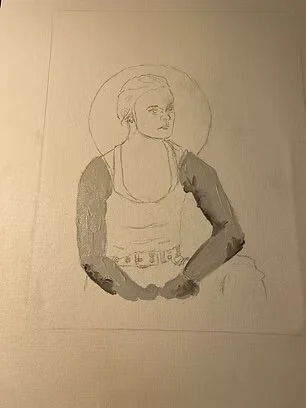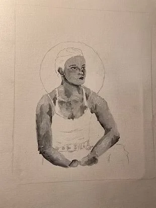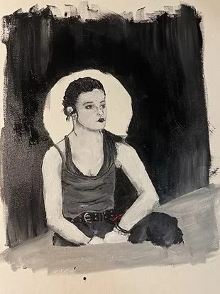 Painting of Caesar (Marisa Dinsmoor) In world it is a scrap of a larger painting that was cut out of the canvas to save it after the painting was partially painting over by anti-Caesar individuals