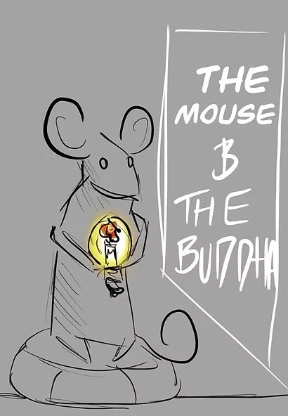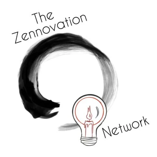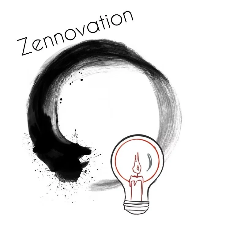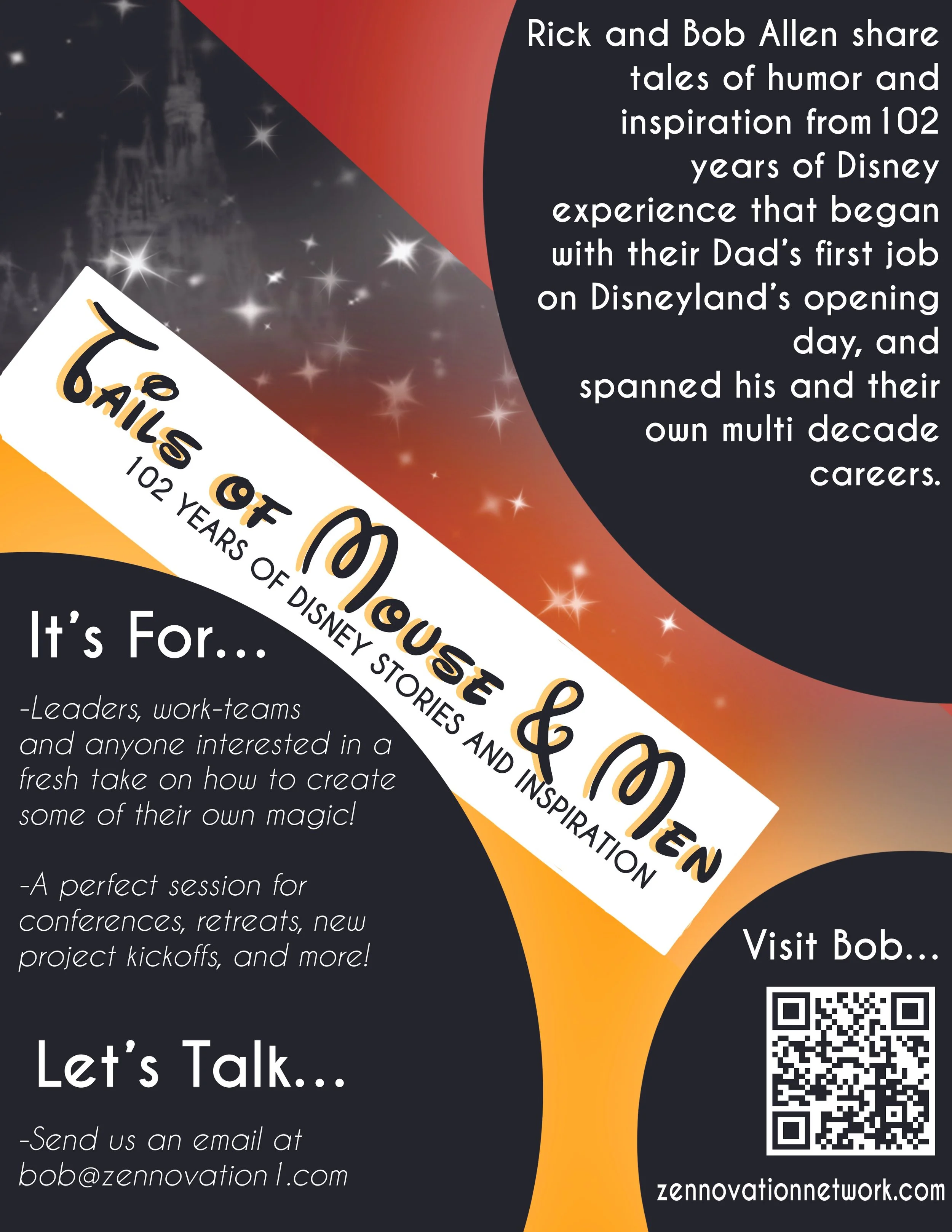 The Zennovating! poster uses the candle light-bulb imagery from the logo, and features nods to Bob's Disney background in the shades of red, yellow, and white (see Mickey's pants, shoes, and gloves).